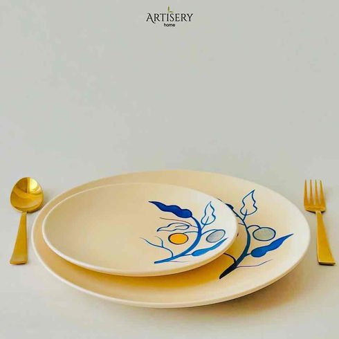 The Solaris Dinner plate is a vibrant celebration of nature’s charm, featuring hand-painted motifs of the artistic fruit and foliage design. Its minimalist yet artistic design brings a refreshing burst of color and style to your dining table.